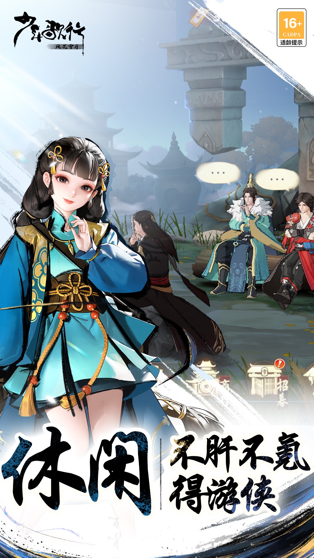 《少年歌行:风花雪月》是一款正版授权的国风手游,还原了动画中青春靓丽的角色形象、充满想象力的绚丽特效和独具特色的神兵利器,带您踏入少歌世界的江湖之路,体验荡气回肠的原版剧情。游戏开放了上百种侠客阵容搭配,充分发挥玩家的创意与策略优势。在收集与养成上,则采用轻松休闲的放置卡牌形式,不肝不氪也能收集和培养海量侠客。游戏中还有登天阁、剑心冢、蓬莱幻境、蛛网任务等丰富活动,让您自由畅游纯正的武侠世界。